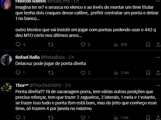 Apenas os nomes de Léo Ortiz e De La Cruz vazaram na mídia. Outros jogadores são mantigos em sigilo, enquanto o clube da Gávea convive com o forte desejo dos rivais em levar os principais craques da equipe hoje.