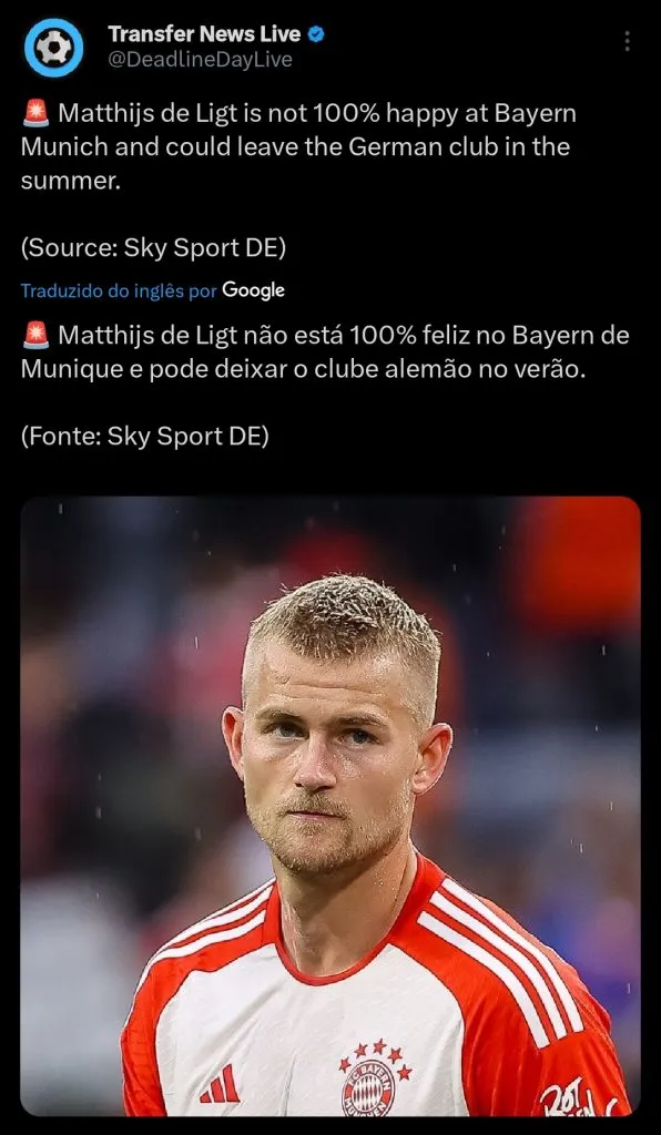 A contratação de De Ligt é um pedido exclusivo de Ten Hag, mas o treinador ainda não sabe se ficará no cargo. Chelsea também mantém o jogador na sua lista de transferências.