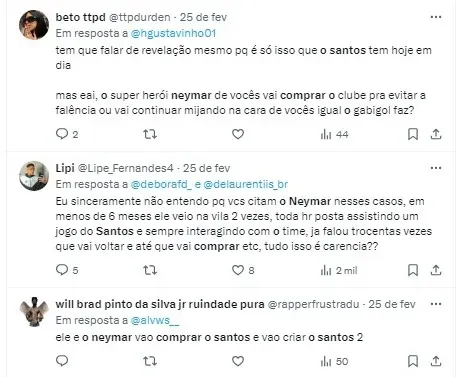 “Neymar, qualquer outro (poderia comprar o clube). Essa identidade dele ser do Santos, não vejo nenhum problema”, garantiu o mandatário