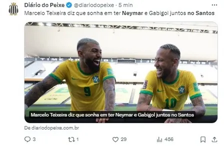 Teixeira afirmou que um retorno imediato do astro ao Peixe é “muito difícil”, mas destacou que a volta no meio do ano que vem se mostra totalmente “viável”. O presidente ressaltou a forte ligação emocional de Neymar com o Santos, mencionando sua recente aparição na Vila Belmiro para acompanhar um jogo do clube pelo Paulistão.