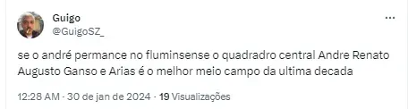 Nesta terça-feira (30), em entrevista coletiva, o presidente do Fluminense, Mário Bittencourt comentou sobre a situação de pelo menos dois jogadores da equipe: André e Arias. O dirigente comentou que até então não há propostas oficiais pelos jogadores, contudo que existe a chance de novidades nos próximos dias. Vale lembrar que ovolante, é monitorado pelo futebol europeu.