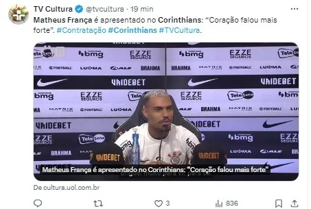 O Corinthians oficializou neste sábado (17) a chegada do novo lateral-direito, Matheus França, em uma apresentação marcada por emoção e sonhos.