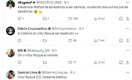 O diretor de futebol do Vasco, Alexandre Mattos, já sondou a situação do atacante com seu seus empresários, que possui uma multa considerável baixa para transferências nacionais. Vale lembrar que ele já chegou a tirar Vitor Roque do Cruzeiro para levar ao Athletico-PR. O jogador é agenciado pelo empresário André Cury.