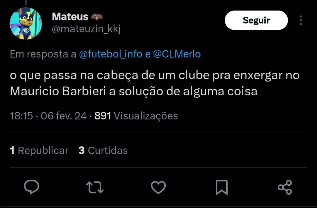 O jornalista Cesar Luis Merlo reporta que o técnico Maurício Barbieri aceitou uma proposta de uma equipe de fora do Brasil.