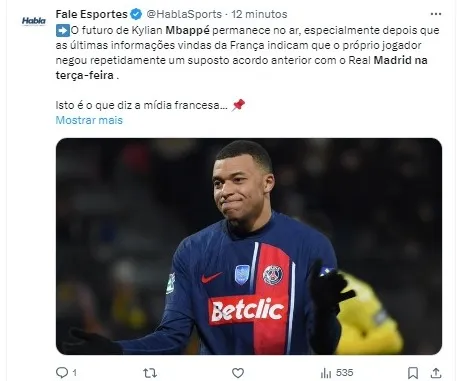 Os rumores sobre a possível transferência de Mbappé para o Real Madrid ganharam força nas últimas semanas, com relatos de que o jogador já teria assinado um acordo com o clube espanhol.