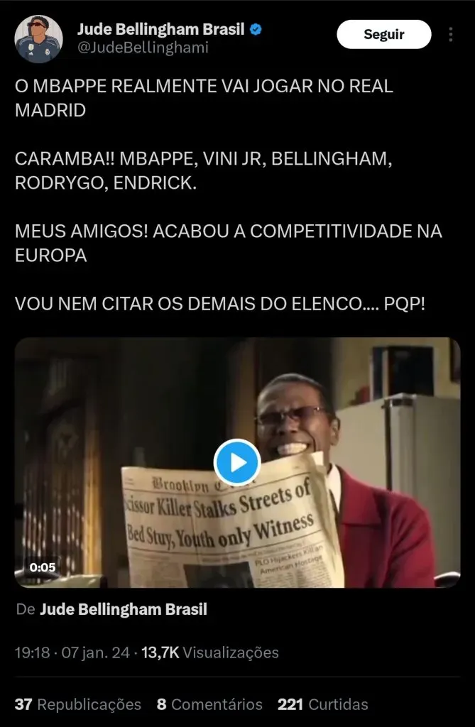O jornalista Santi Aouna reporta que Mbappé finalmente aceitou a proposta do Real Madrid para ser jogador da equipe na próxima temporada.