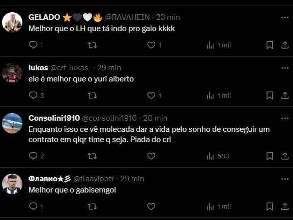 A notícia de última hora agita os fãs nas redes sociais. Muitos aceitariam MC Livinho como reforço de suas equipes do coração e comentam em relação ao assunto na web.