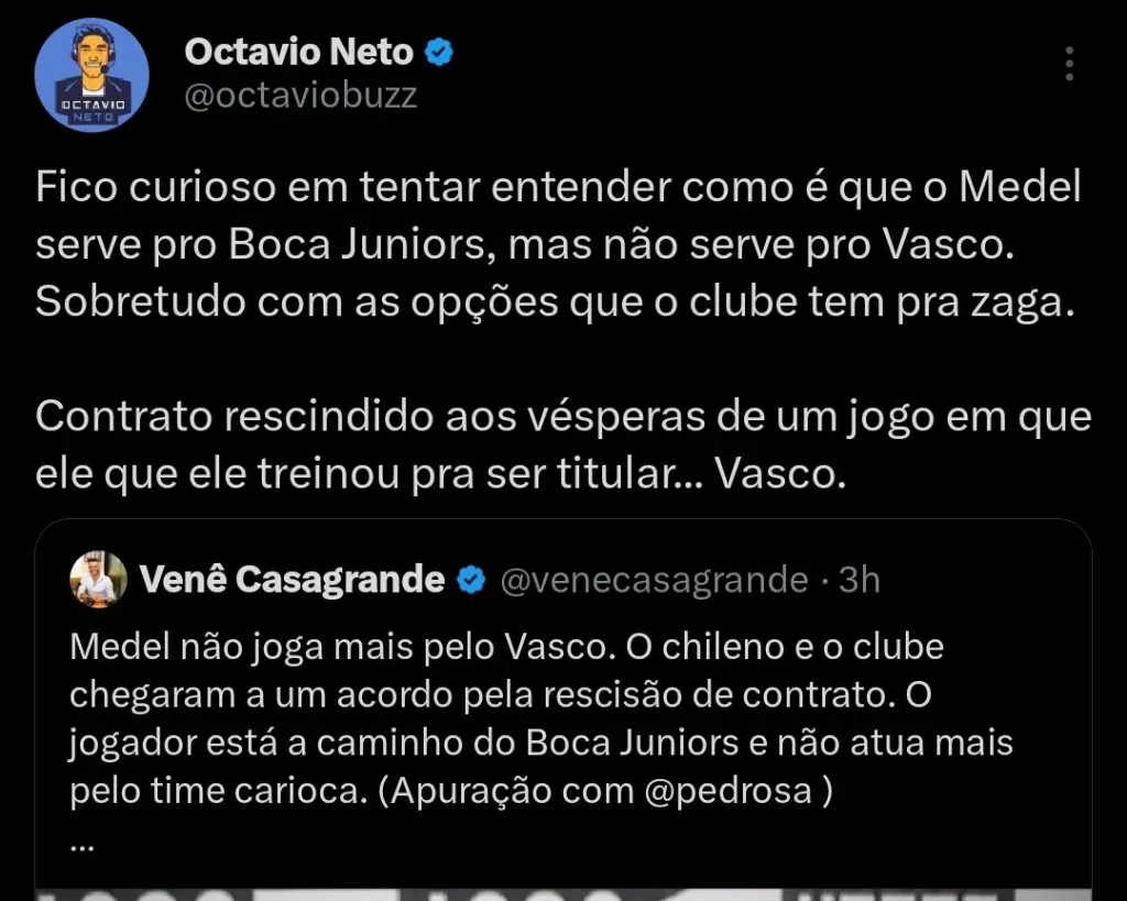 O jornalista Venê Casagrande informa que o volante Gary Medel aceitou uma proposta para vestir as cores do Boca Juniors.