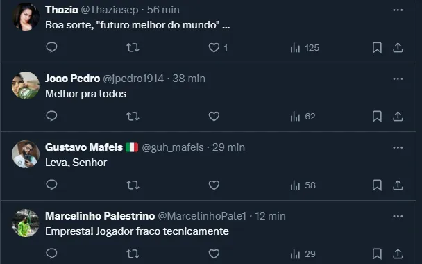 Abel já deu projeções otimistas sobre o futuro do meia: “Jogador que dribla, que assume riscos. E para assumir riscos, vai errar passes. Mas eu digo para fazer isso. Vai ser um jogador que pode chegar aos melhores do mundo”, disse.