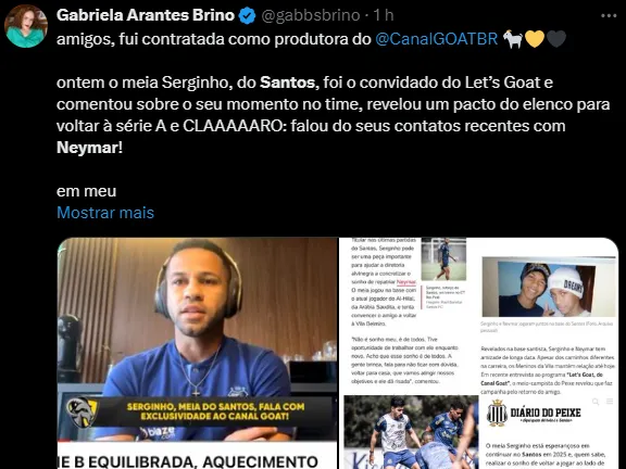 Enquanto machucado, Neymar esteve no Brasil e Serginho, meia revelado no Santos junto com o craque, revela pedido especial: “Não é sonho meu, é de todos. A gente brinca, fala para não ficar com dúvida, voltar para casa”, disse.