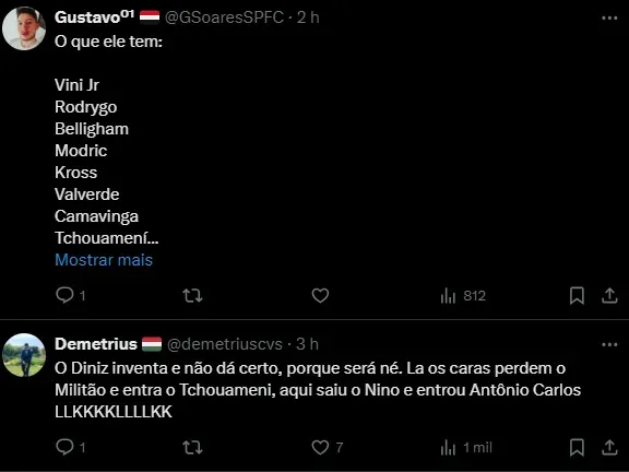 Reinier, por exemplo, está emprestado pelo terceiro ano consecutivo. Jesús Vallejo é outro caso de empréstimo, que deve retornar ao clube merengue no fim da época 2023/24.