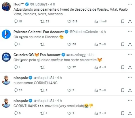 O Cruzeiro agradeceu e desejou sucesso em suas trajetórias. A lista de dispensas não deve parar por aí, com a possibilidade de mais saídas nos próximos dias.