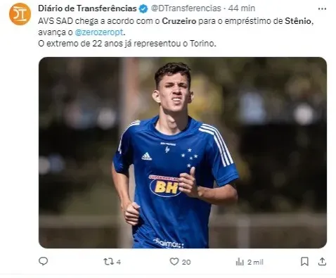 Stênio, revelação da base do Cruzeiro, já teve passagem por empréstimo no Torino até meados de 2022, com o clube mineiro recebendo pouco mais de R$ 400 mil pela cessão temporária.