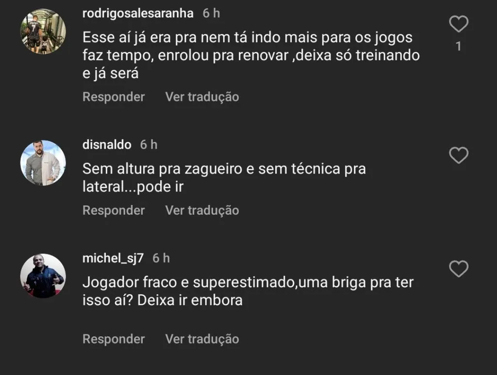 Até o momento, a equipe não apresentou nenhuma oferta oficial pelo zagueiro. O Corinthians sabe do assédio dos clubes, e o próximo presidente é quem irá decidir pela permanência ou não do jogador.