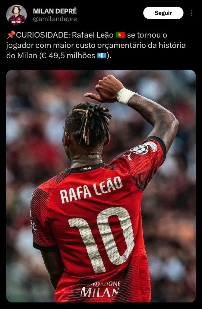 O atacante Rafael Leão vem sendo um dos principais jogadores da equipe do Milan nas últimas temporadas, atuando como grande artilheiro da equipe italiana. Com tanto destaque, o jogador português acabou recebendo a histórica camisa 10 da equipe rubro negra.