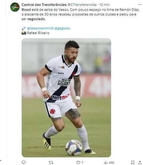 Rossi está prestes a deixar o Vasco. O atacante de 30 anos, com pouco espaço no time comandado por Ramón Díaz, decidiu buscar novas oportunidades em outros clubes após receber propostas concretas.