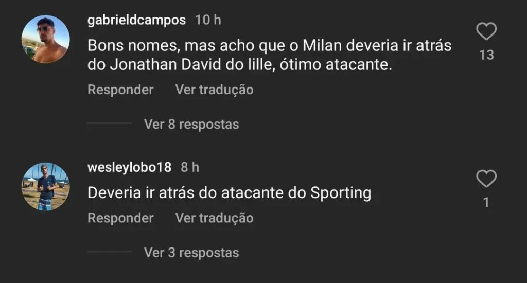Outros nomes também tem sido analisados pela diretoria para reforçar setores carentes no atual elenco. O ataque também deve ser focado pelos Rossonerro na próxima janela de transferências do mercado europeu, e o nome de Sesko, do RB Leipzig, também está na mira do clube.
