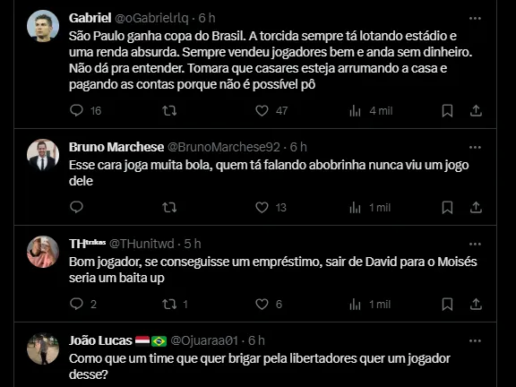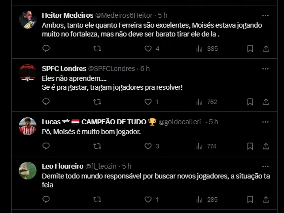O coleta Alexsander Vieira, do Bolavip Brasil, traz a informação: “São Paulo consultou a situação do atacante Moisés, que se destacou no Fortaleza e atualmente está no Cruz Azul”, destaca.