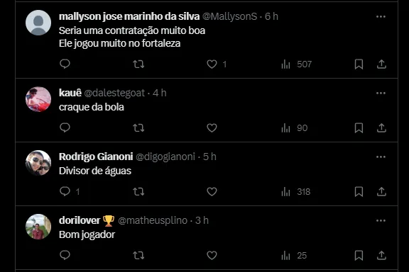 “O staff do jogador tenta viabilizar uma volta pro empréstimo e tem prospectado algumas equipes aqui no Brasil, já sabendo que dificilmente conseguiria um negócio em definitivo”, completou o comunicador.