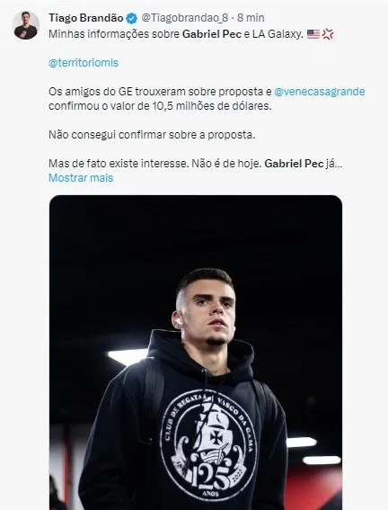 Dessa vez, o alvo da equipe é Gabriel Pec, atacante em ascensão do Vasco, que se destacou na última temporada, despertando o interesse de diversos clubes ao redor do mundo.