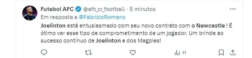 O Newcastle anunciou hoje a renovação do contrato de Joelinton, jogador brasileiro de 27 anos. Após meses de incerteza devido a lesões e especulações no mercado, o clube e o jogador concordaram em estender o contrato até julho de 2028, segundo informações da imprensa inglesa.