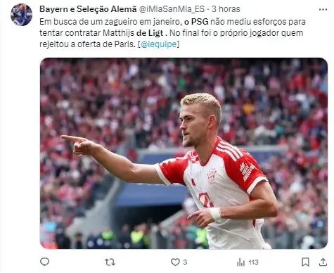 Enquanto isso, De Ligt permanece comprometido com o Bayern de Munique até o final desta temporada, quando o PSG planeja retomar as conversas com o jogador e o clube alemão, visando uma possível transferência para a próxima temporada.