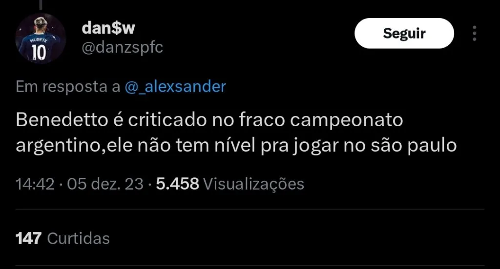 Sabendo de que a diretoria do clube busca um atacante para 2024, o agente viu uma brecha para tentar transferir o atleta para o Tricolor do Morumbi. Apesar disso, a negociação é dada como bastante difícil de acontecer.