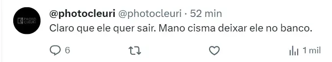 “Está bem longe. A gente precisa contratar, precisa trazer, temos que ser honestos. Não cabe a mim quem contrata, quem chega. Mas temos que reforçar, né? O volante não pode entrar de zagueiro. Precisamos trazer jogadores, precisamos melhorar, saíram 12 ou 13 jogadores”, disse Cássio.