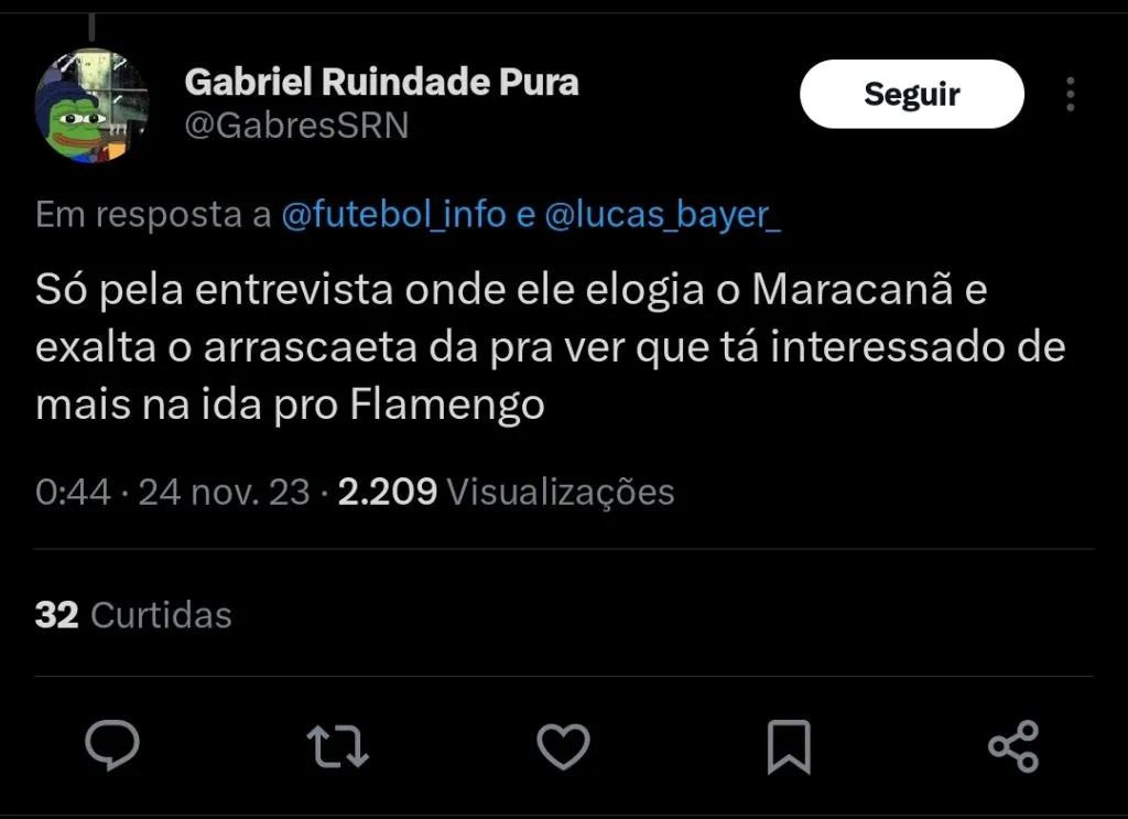 “Fiquei sabendo (do interesse do Flamengo) no meio da parada (data FIFA), mas estou focado nesses quatro último jogos“, disse o defensor afirmando interesse da equipe e deixando futuro em aberto.