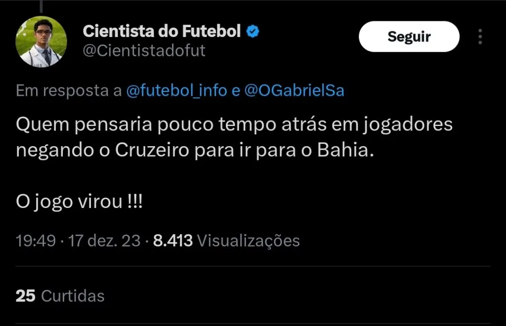 O jornalista Yuri Santana reporta que a equipe do Bahia avançou nas tratativas pela contratação em definitivo do atacante Bruno Rodrigues.