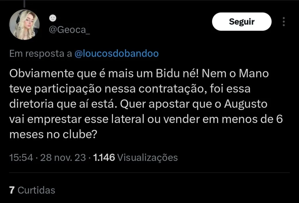 Nesta semana, após vários dias de rumores, o clube acertou a contratação de um destaque do futebol brasileiro para substituir o lateral.