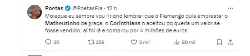 Para Neto, a falta de destaque de Matheuzinho no Flamengo foi um ponto de preocupação, sugerindo que o jogador não permanecerá no Corinthians por mais de um ano. Suas palavras foram enfáticas ao afirmar que o jogador não alcançará sucesso no clube alvinegro.