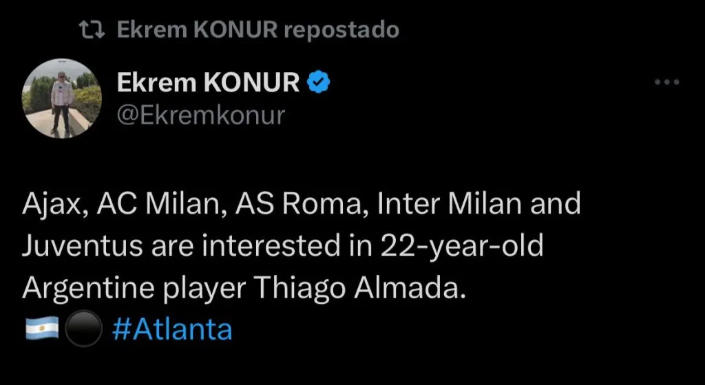 Segundo informações do jornalista Ekrem Konur, o meia argentino de 22 anos Thiago Almada desperta interesse de Inter de Milão e Milan, grandes rivais do Futebol Italiano.