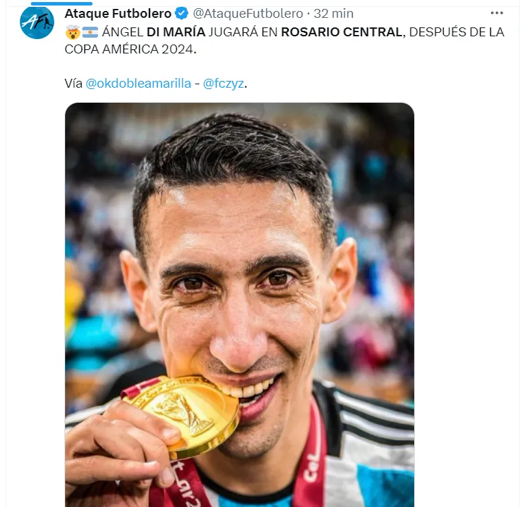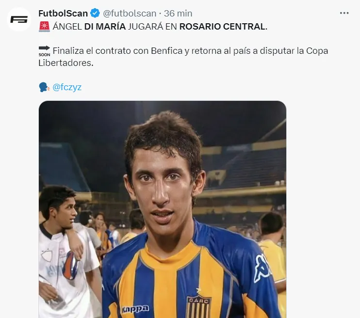 De acordo com informações da mídia internacional (Fernando Czyz), Di María será jogador do Rosário Central em 2024 e participará da Copa Libertadores, já que o time argentino estará presente na próxima edição.