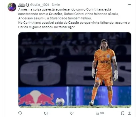 Com um histórico glorioso no Corinthians desde 2012, Cássio é um verdadeiro ídolo, porém recentemente perdeu a posição de titular para Carlos Miguel.
