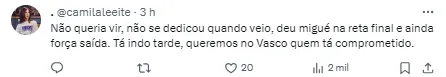 A única preocupação é quem o Vasco trará para a posição. Perder dois jogadores “juntos” é um risco, faltando poucos dias para o início do Campeonato Carioca, além dos amistosos onde o treinador Ramón Díaz vai observar suas opções e buscar a melhor forma de montar a equipe.