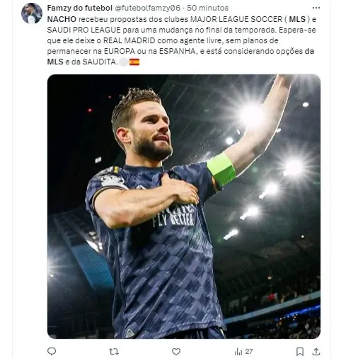 Segundo informações de Fabrizio Romano, especialista em transferências no futebol, Nacho recebeu propostas tentadoras de clubes da MLS e do futebol árabe.