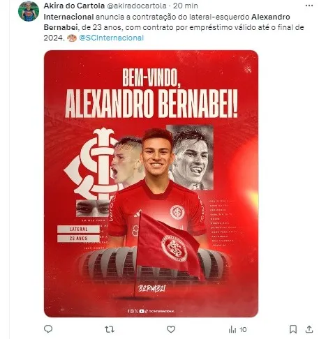 O Internacional fechou sua janela de transferências com uma nova contratação para reforçar o elenco. Alexandro Bernabei, lateral-esquerdo argentino de 23 anos, é o mais recente reforço anunciado pelo Colorado.