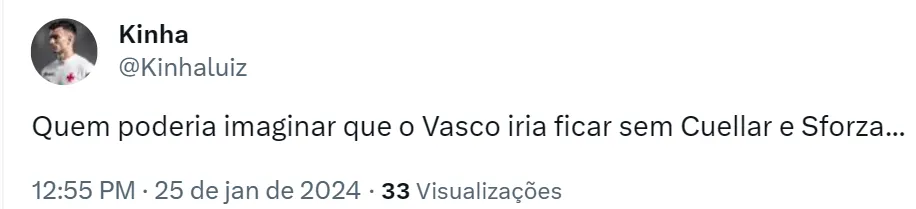 A notícia nos últimos dias também era de que a negociação com Sforza tinha cancelada, como o próprio presidente do time do jogador disse em entrevista. Ou seja, o Vasco buscou os dois jogadores mas acabou não fechando com nenhum até então. Sem contar com Luciano Rodriguez, que era outro desejo do clube, mas com valores altos.