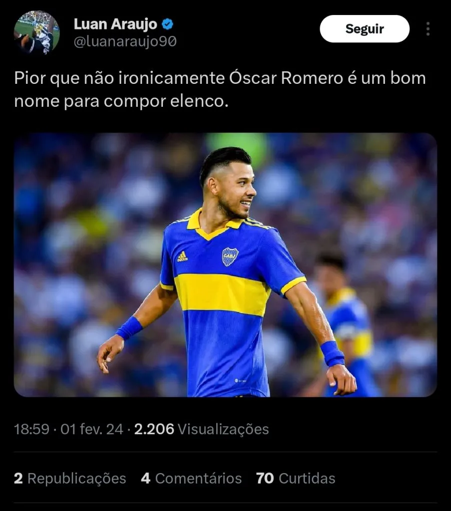 De acordo com informações divulgadas pelo Mundo Cuervo, o Corinthians iniciou negociações pela contratação de Óscar Romero.