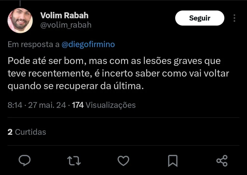 Para resolver estes problemas, e uma possível saída do ponta esquerda, o Verdão passou a considerar uma possível investida por um antigo conhecido do torcedor.