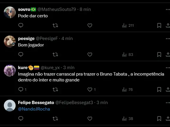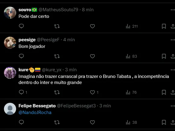 As cifras citadas pela reportagem do Somos Fanáticos não são confirmadas pelos colegas do NP. Tabata se arrepende de ter jogado no Catar recentemente, onde atuou por empréstimo.