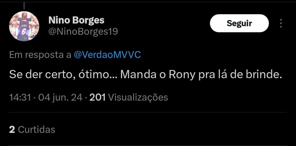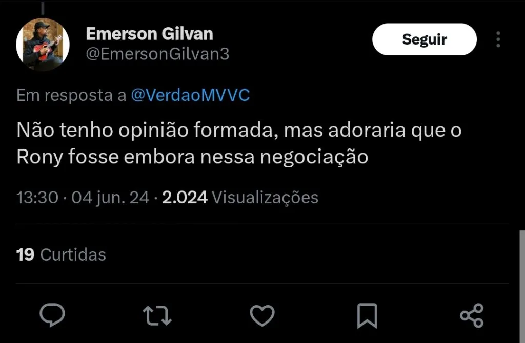 No momento, não há nenhuma negociação em curso, e nenhuma proposta foi apresentada pelo lado do alviverde paulista.