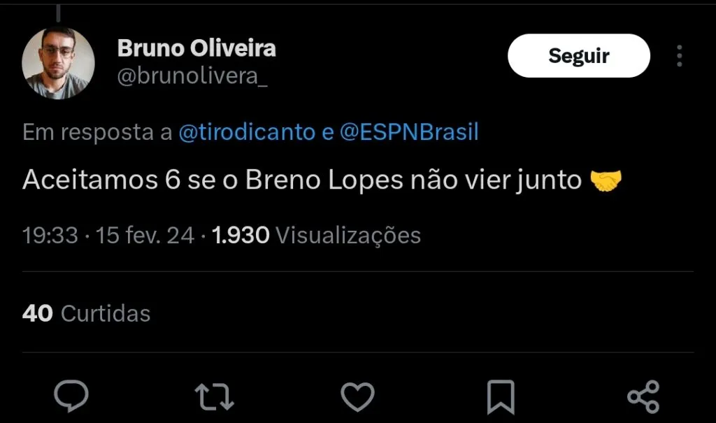 O nome mais provável de ser colocado nas tratativas, é do atacante Breno Lopes, que está fora dos planos do clube. Ele chegou a ser sondado por outras equipes brasileiras, mas as negociações não avançaram.