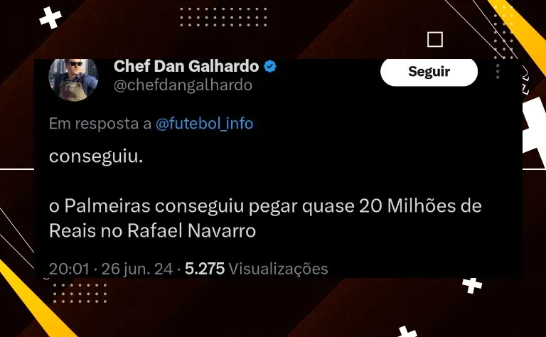 Ainda segundo a fonte, o Alviverde irá receber uma quantia milionária pela saída do atleta nesta janela de transferências. O negócio foi fechado em cerca de U$3,5 milhões (R$19,3 milhões).