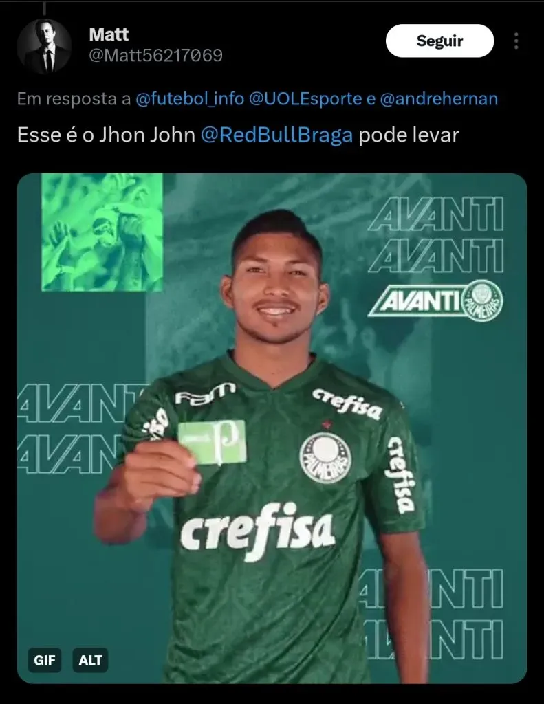 O jornalista André Hernan reporta que o Palmeiras recusou a investida feita pela diretoria do RB Bragantino.