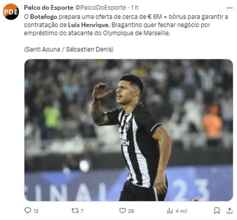 O Botafogo expressou seu desejo de manter o atacante Luis Henrique, atualmente no Olympique de Marseille, após um empréstimo bem-sucedido.