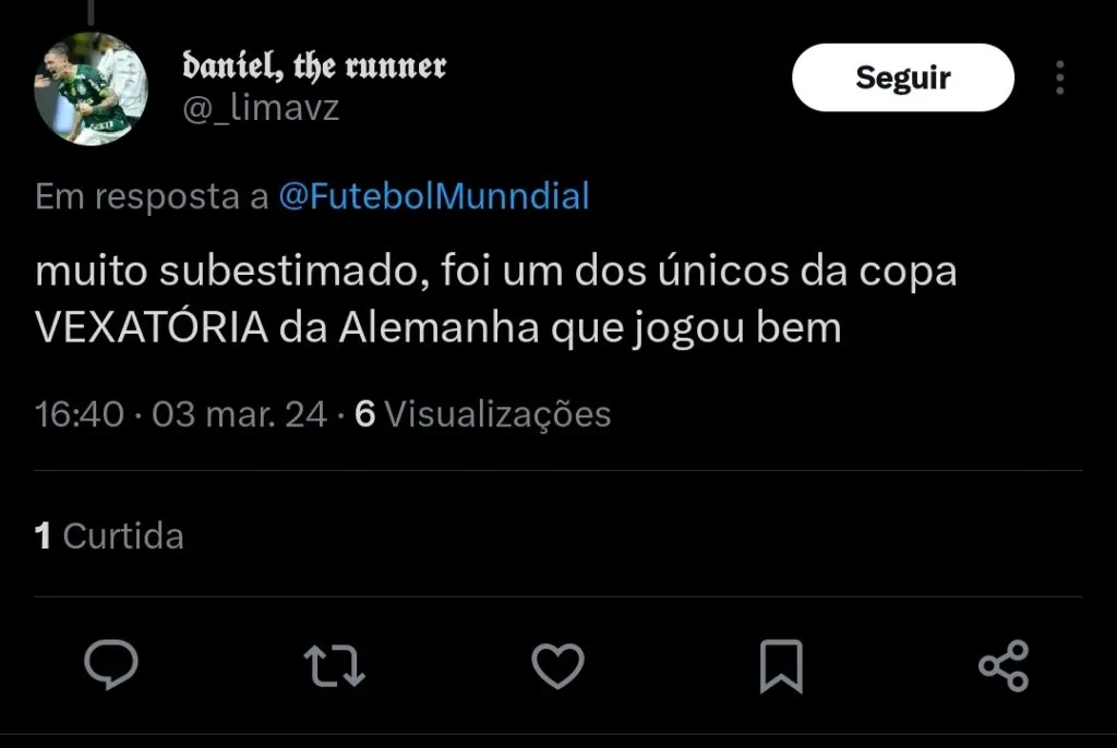 Suas atuações vem chamando a atenção, e ele tem se mantido cada vez mais como uma peça fundamental no gigante da capital alemã.
