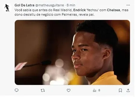 Em uma revelação surpreendente ao jornal inglês The Guardian, Douglas Ramos, pai do talentoso atacante do Palmeiras, Endrick, compartilhou os detalhes de uma quase transferência para o Chelsea, da Inglaterra, antes do negócio com o Real Madrid se concretizar em dezembro de 2022.