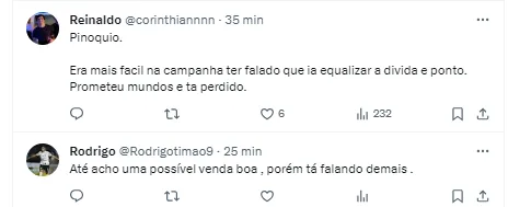 Contudo, o presidente garantiu para a torcida do Corinthians que a equipe terá reforços em breve.